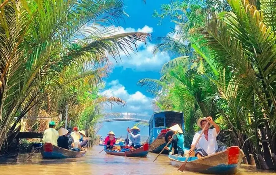 Your Mekong Delta adventure begins as you leave the bustling city of Ho Chi Minh and journey to My Tho, a wonderful town along the Mekong River. First, you’ll visit the historic Vinh Trang pagoda, a beautiful 19th-century site. Then, together, you’ll embark on a delightful sampan cruise, exploring the enchanting islands of Dragon, Unicorn, Phoenix, and Tortoise.